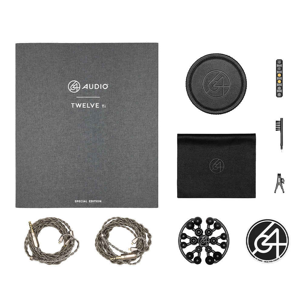 | 付属品 | 64 Audio Premium Leather Case Shielded Cable (3.5mm & 4.4mm) TrueFidelity Foam Tips (S, M, L) SpinFit Silicone Ear Tips (S, M, L) Silicone Ear Tips (S, M, L) Apex Module (m20, m15, m12, mX) クリーニングツール クリーニングクロス クリップ 64 Audio ステッカー 保証書 |